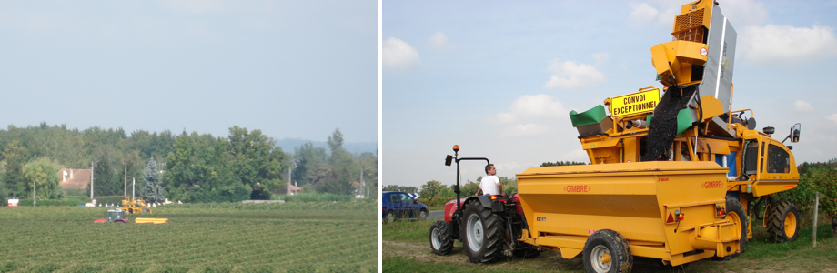 Les vendanges sont réalisées mécaniquement pour récolter le raisin au moment le plus opportun et mieux maîtriser les coûts de production.
